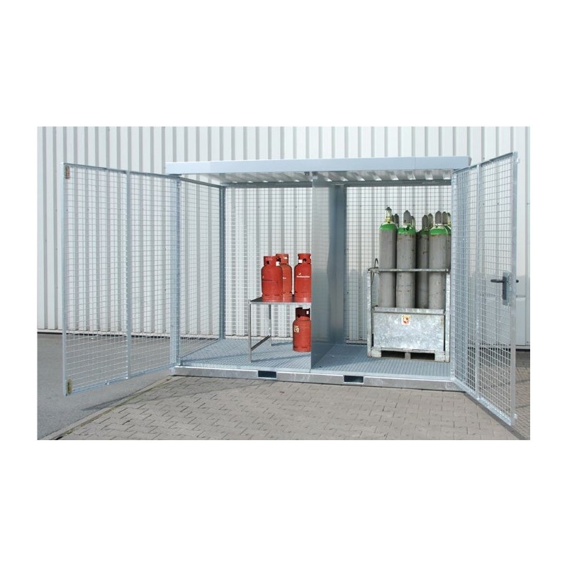 Cette version du module grillagé pour le stockage de bouteilles de gaz avec plancher peut être déplacée.