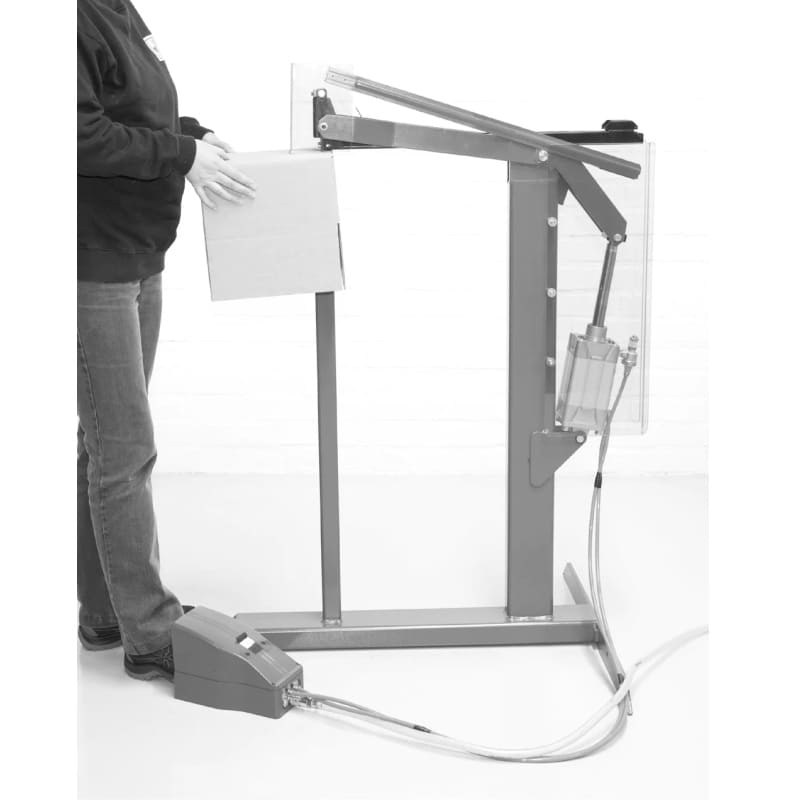 Cette agrafeuse pneumatique à pédale B561PN est employée pour la fermeture des rabats inférieurs de boîtes en carton avec des agrafes larges.