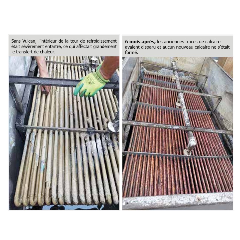 le calcaire menace quotidiennement la longévité des équipements industriels de fabrication ou d'utilités tels que les échangeurs de chaleur, les chaudières, et les systèmes de refroidissement. En empêchant l’entartrage, Vulcan protège ces équipements, réduisant ainsi les risques de pannes et les besoins en maintenance, et participe à l’amélioration de l’efficacité énergétique.