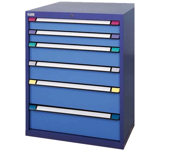 Les 6 tiroirs 100% extensibles de cette armoire métallique acceptent chacun 75 kg.