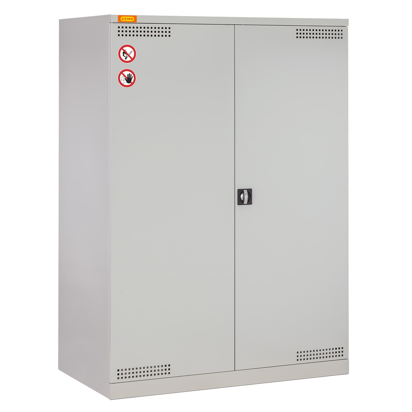 L'armoire à fûts métallique pour l'intérieur CEMO offre également la possibilité de raccorder une VMC Ø 75 mm sur son toit. Elle est livrée complètement montée, prête à l'emploi
