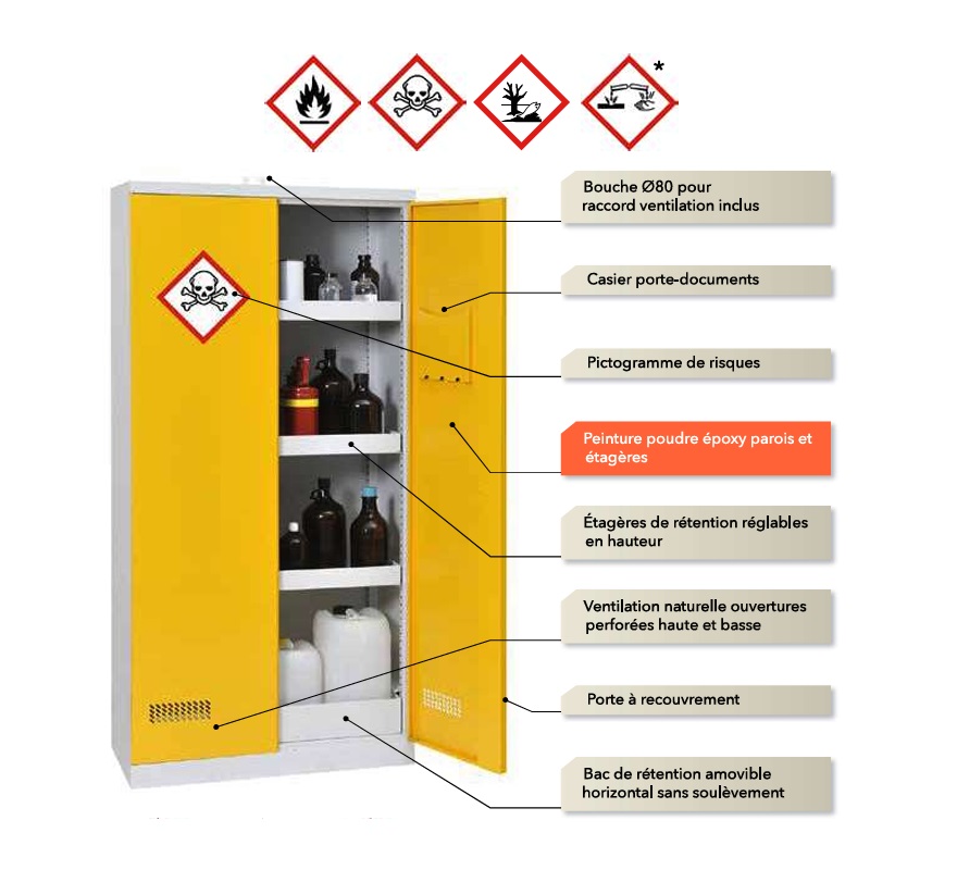 L'armoire de sécurité métallique multiproduit DIFOPE est un meuble de stockage universel pour produits dangereux : toxiques, nocifs, polluants, inflammables ou même corrosifs selon finition.