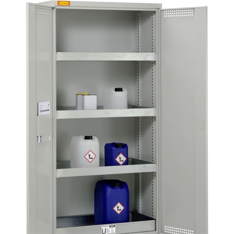 - Équipées de 4 étagères de rétention étanches en acier galvanisé