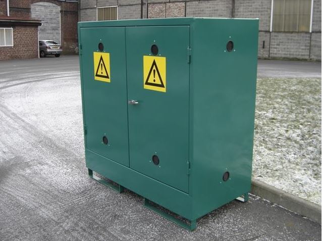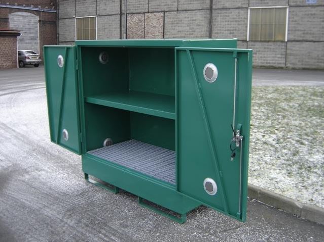 L'armoire DMS CS 5 dispose d'un bac de rétention intégré pour stocker les produits sensibles ou polluants en toute sécurité. Elle est équipée de 2 portes battantes fermables par cadenas