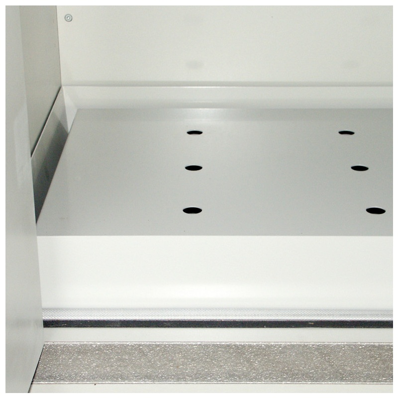 - Bac de rétention en acier peint avec paillasse en bas de l’armoire