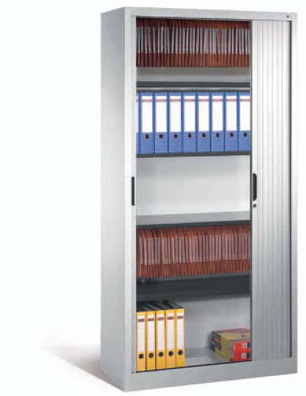 L'armoire à rideaux série économique se décline en 4 modèles, 2 largeurs x 2 hauteurs 1980 mm. Bien que proposée à un prix attractif, elle dispose d'un bon niveau de finitions, avec larges lamelles de rideaux et en coloris standard gris clair RAL 7035.