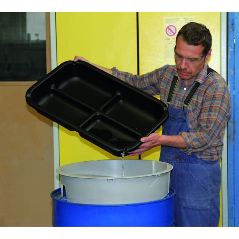 Fabriqué en polyéthylène, le bac de vidange XL facilite les opérations de vidange au quotidien. Ilrésiste à la plupart des produits chimiques, notamment les acides et les solvants.