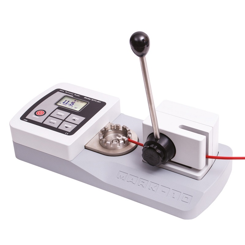 Le WT3-201 est un banc dynamométrique conçu pour vérifier la qualité de sertissage de vos cosses électriques et autres sertissages. Il opère un essai d'arrachage qui une méthode rapide et destructive d'évaluation des propriétés mécaniques d'un raccordement serti.