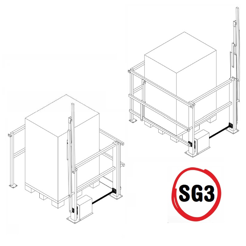 - Modèle SG3A : barrière écluse avec une sortie à 90° latérale : permet d'évacuer la palette sur un des côté de la barrière ecluse.