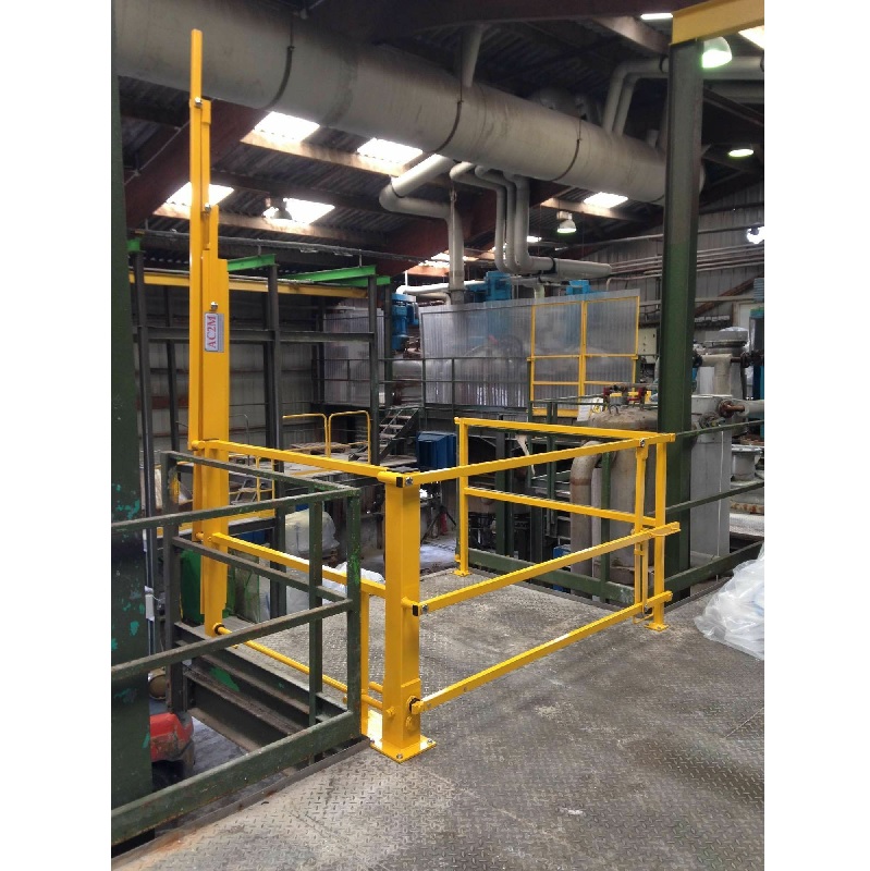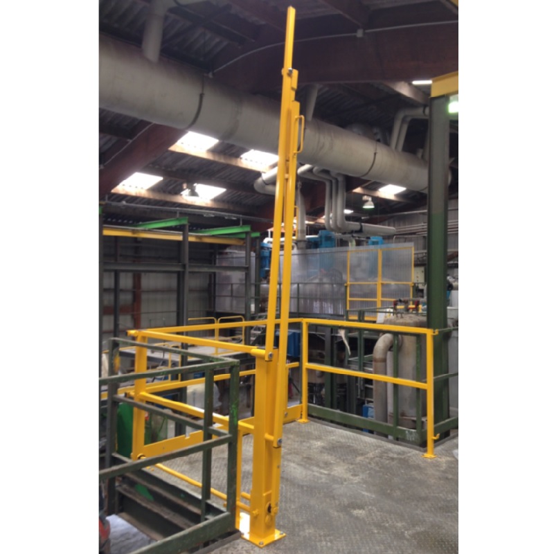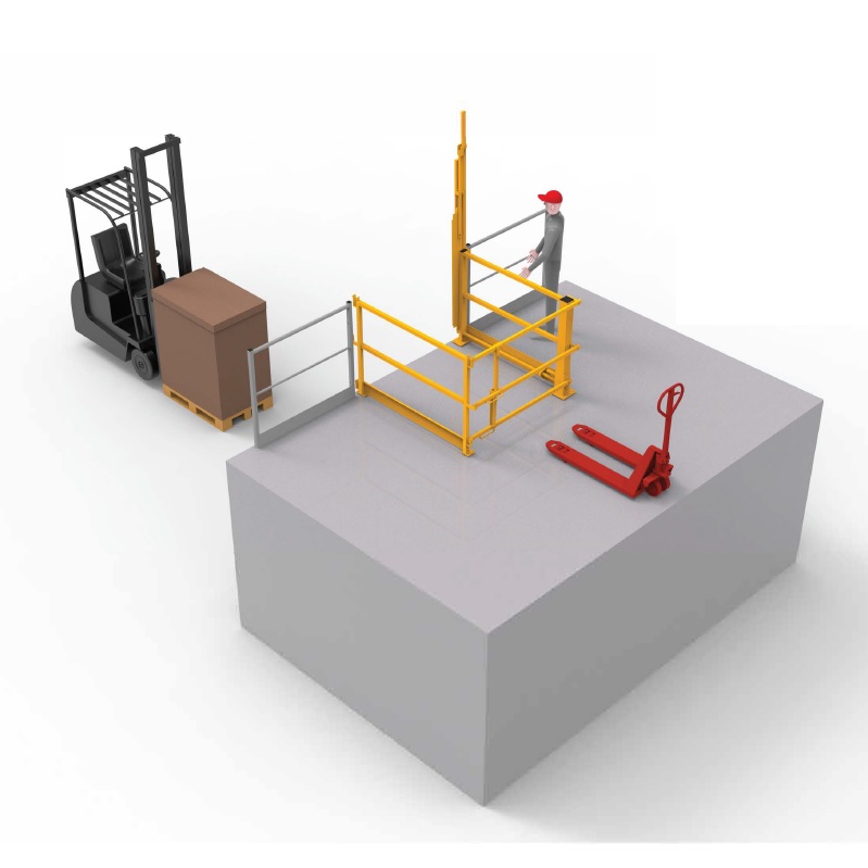 Lorsque la manutention entre deux étages ne s'effectue pas avec un chariot-élévateur mais par palan ou équivalent, l'installation d'une barrière écluse basculante en bord de vide n'est pas possible, car l'appareil de levage risque de cogner dans les lisses du garde-corps lorsque celui-ci est relevé. Il est donc indispensable de trouver une autre solution pour sécuriser la plateforme de travail contre la chute de hauteur de l'opérateur.
