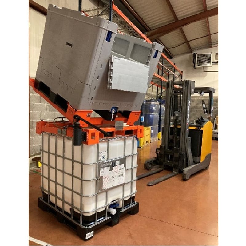 Le basculeur de conteneur cuve à cuve LRE Solution est conçu pour optimiser le transfert de liquides entre cuves IBC en toute sécurité, sans pompage complexe ni manipulation à risque.