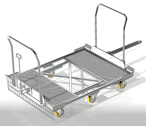 Pouvant être équipée d'un timon de traction (en option), la plateforme roulante pour charges lourdes n'en est pas moins maniable. Elle peut facilement être mise en train pour l'alimentation de postes bord de ligne.