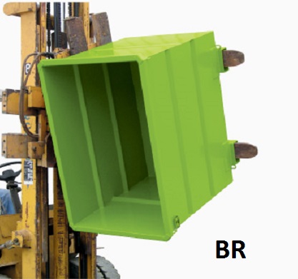 Économique et pratique, la benne à déchets BR pour chariot à Tête Rotative permet de procéder au vidage intégral par retournement.