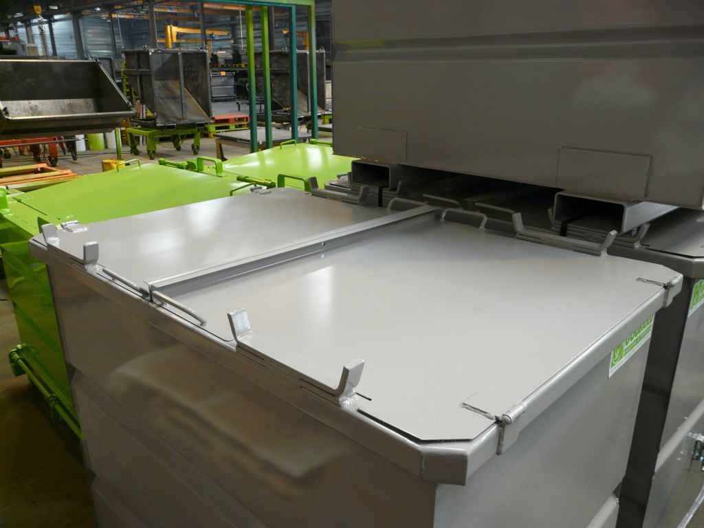 - Caisse en tôle pliée nervurée 20/10ème avec ceinture supérieure renforcée par rebord 3 plis anti-coupure