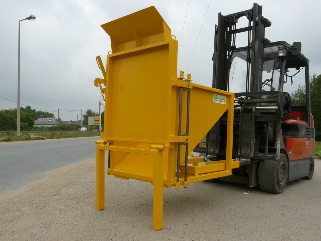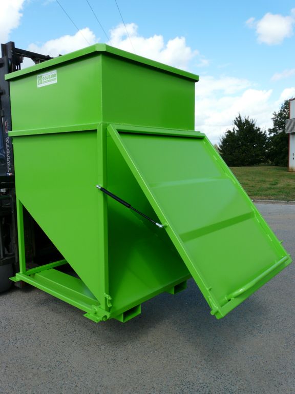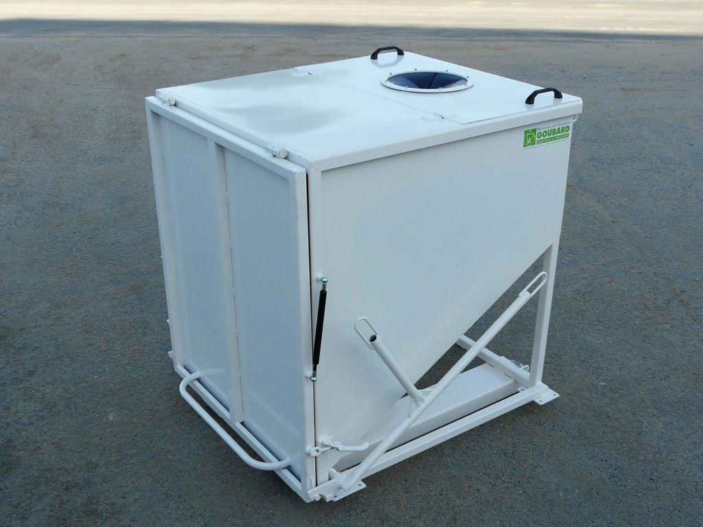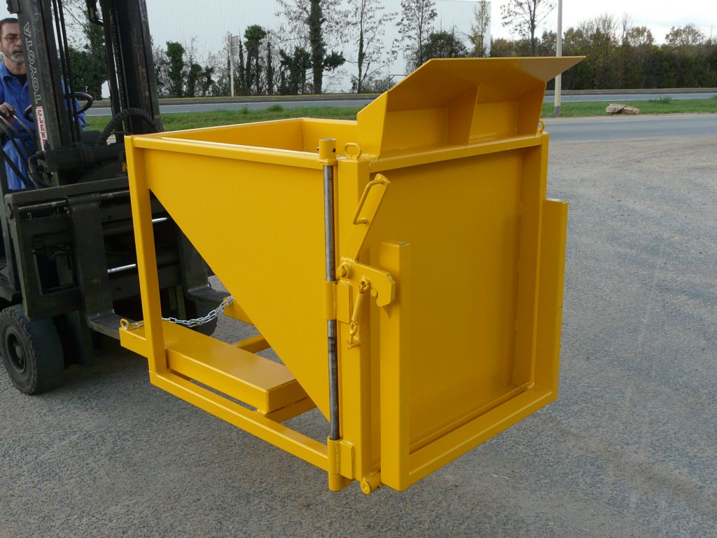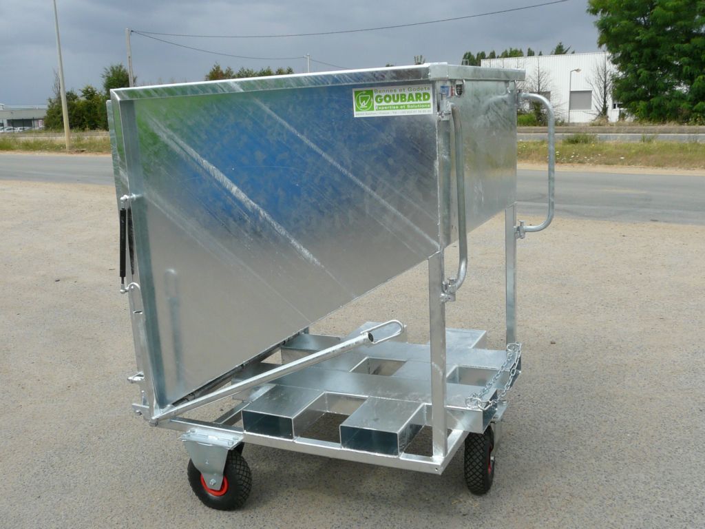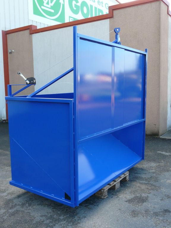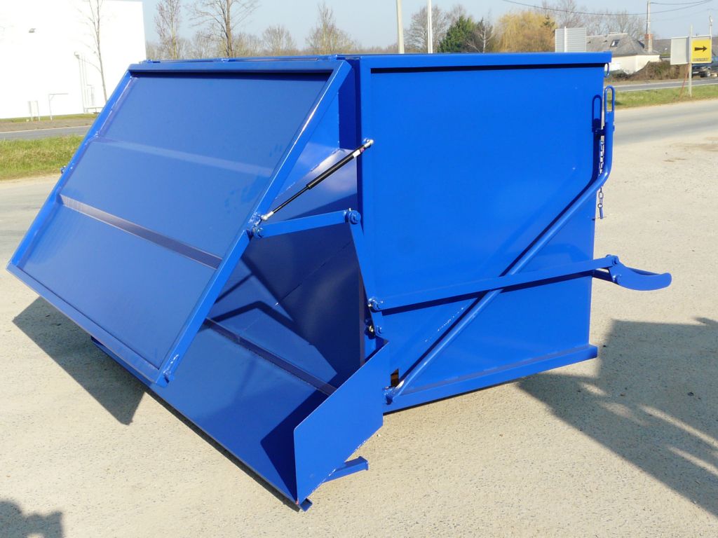 - Capacité de 500 à 2000 litres ; selon la nature des déchets, il est possible d'augmenter la capacité de la benne à fond incliné par simple adjonction d'une réhausse.