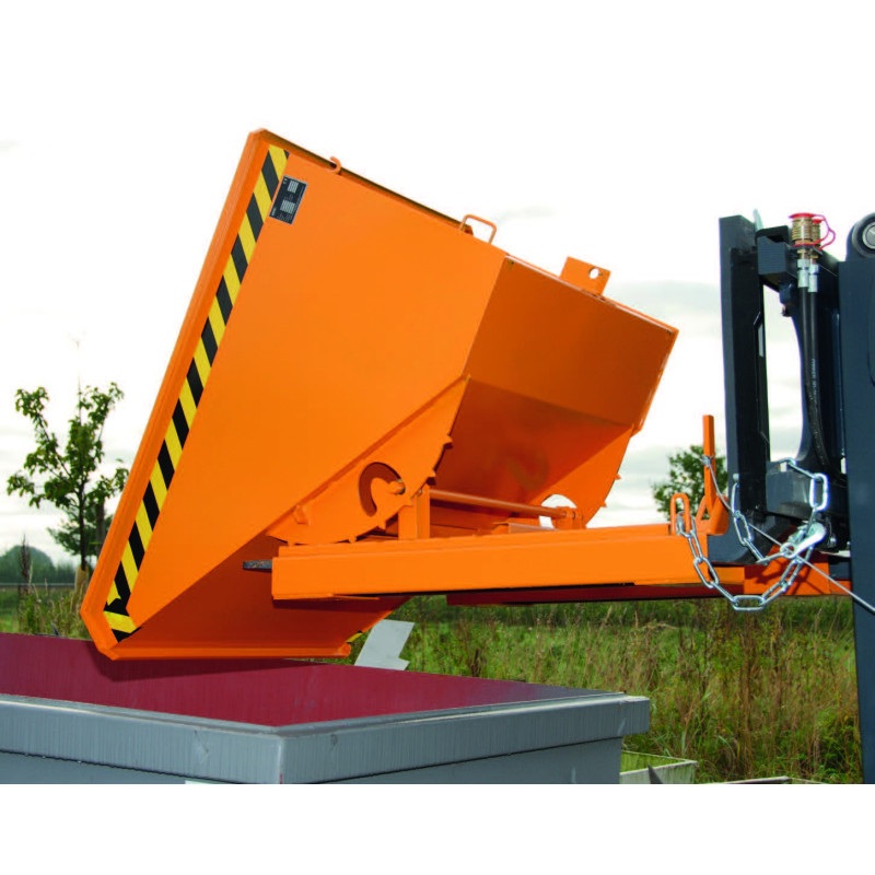 A l'aide de son câble de déclenchement, elle permet de décharger facilement vos déchets en vrac ou en copeaux depuis la cabine de votre chariot élévateur.