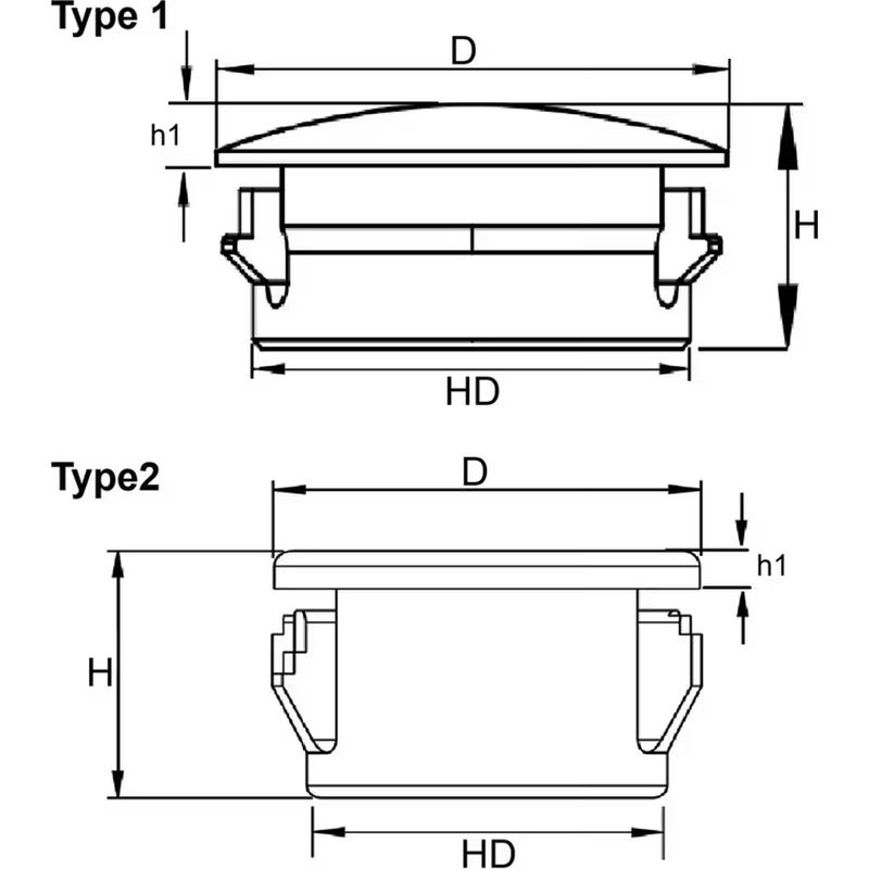 La forme bombée confère une finition esthétique et propre et aide à dévier les impacts, réduisant les risques de dommages au bouchon ou aux équipements dans lesquels il est inséré. Ils sont résistants à la corrosion et fournissent une isolation électrique.