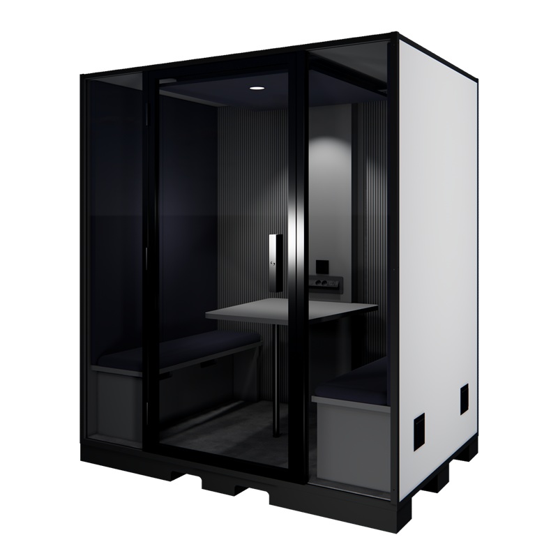 Pensée pour répondre aux besoins de collaboration, cette cabine insonorisée est livrée, prête à l’emploi, avec tous les éléments nécessaires à une prise en main immédiate : banquettes confortables, table fixe, ventilation discrète et connectique intégrée (2 prises 220V, 1 port USB-A, 1 port USB-C, 1 prise RJ45).