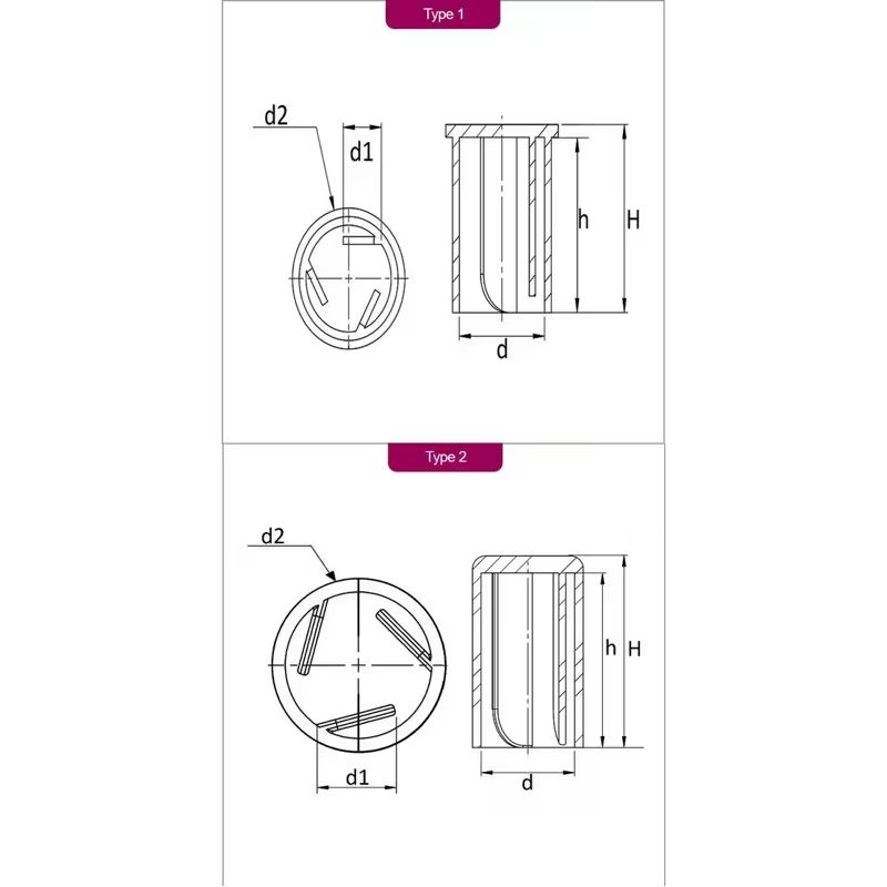 | Référence Essentra | Flanged | FD | d | d1 | d2 | h | H |