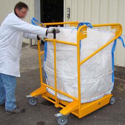 Le chariot big bag KOLLECT BAG est à la fois un support et un chariot de transport pour vos GRVS 1 m3. Grâce à son système de plateau basculant, ce chariot spécial conteneur souple permet notamment la dépose au sol sans autre engin de manutention. Parmi ses atouts à votre service :