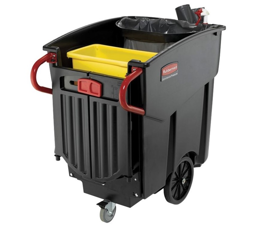 Le chariot collecteur Mega Brut est un système de collecte des déchets polyvalent dont la benne peut accueillir un support de sac et un collecteur de 87 L pour faciliter le tri des déchets à la source.