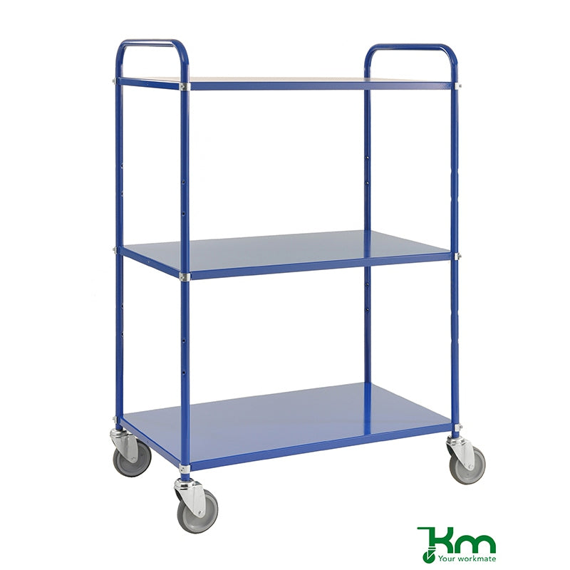 Le chariot desserte haut à étagères réversibles KM4124-EB de KONGAMEK est une solution de transport et de stockage particulièrement flexible, conçue pour les ateliers et les entrepôts.