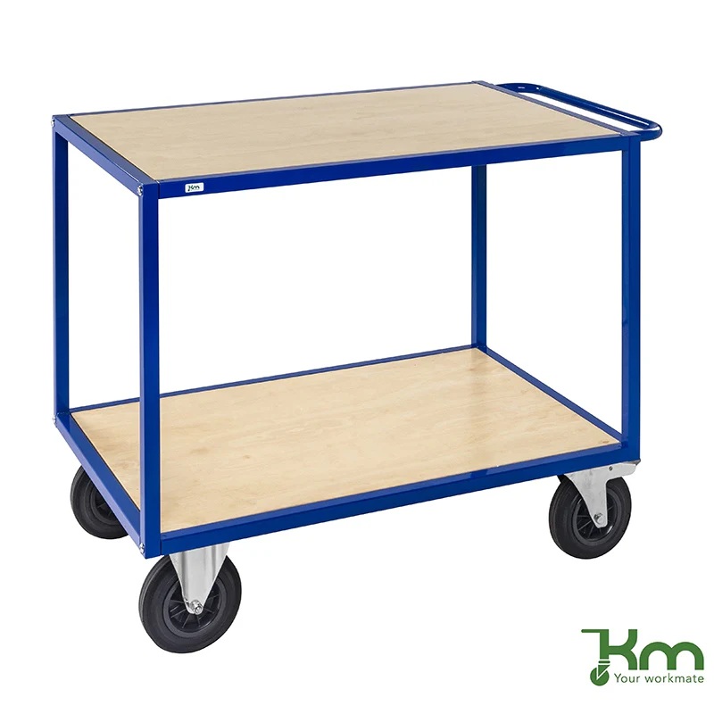 Le chariot desserte industrielle KM337-EK est un équipement à 2 niveaux de pose pour la manutention de charges moyennes à lourdes en atelier et zone de stockage.