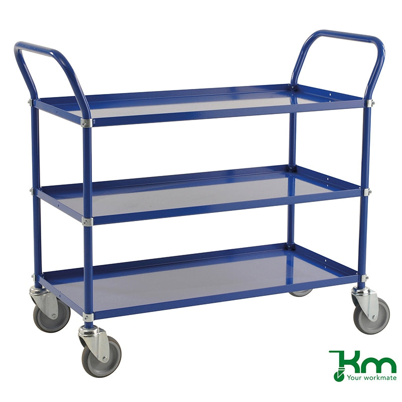 - Découvrez le chariot de service polyvalent de Kongamek, doté de 2 ou 3 étagères réversibles pour répondre à vos besoins spécifiques en matière de transport et de stockage. Ce chariot est conçu pour offrir une flexibilité maximale, avec la possibilité de monter les étagères avec ou sans rebord selon vos préférences.