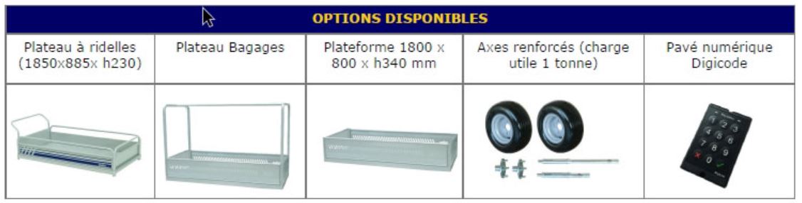| CHARGE UTILE | 600 kg (1T si renforcé) |
