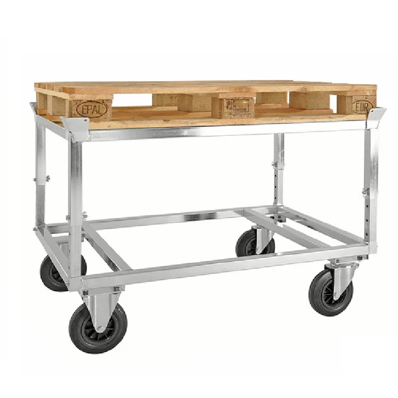 Le chariot pour palette avec coins arrêtoirs est une solution robuste pour le transport sécurisé de palettes en environnements industriels, pour la production ou la logistique.
