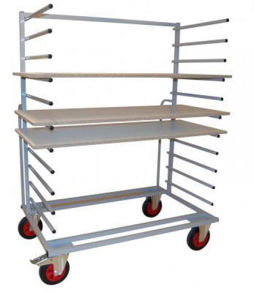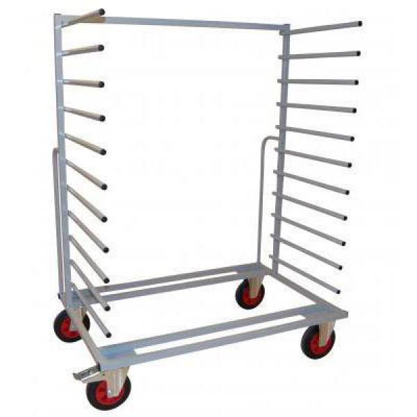 La finition de ces chariots porte panneaux est réalisée en peinture epoxy (Gris RAL 7001)
