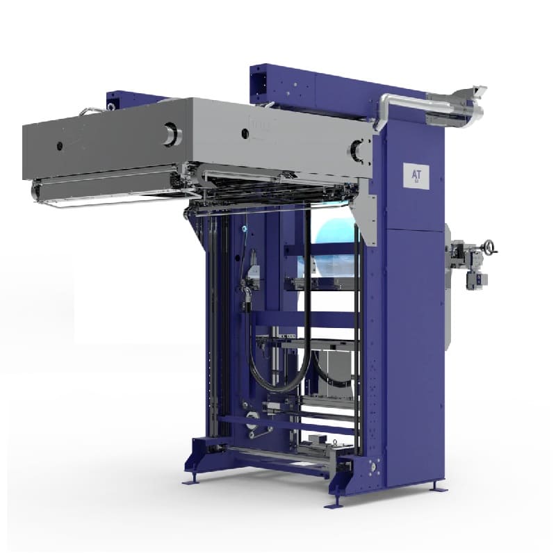 Dans une seule station opérationnelle, donc en espace extrêmement réduit, la housseuse de palette OMS AT53 associe un système houssage breveté pour la préparation, l’ouverture et le positionnement des housses obtenues avec des gaines tubulaires avec soufflets latéraux, avec une thermo-rétraction réalisée par générateur d’air chaud à cadre incorporé.