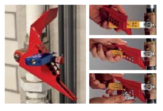 Le système de condamnation de vanne à clapet est l’outil idéal pour bloquer vos vannes à boisseau sphérique quart de tour présentant des angles en position OFF. Il s’adapte sur quasiment tous les leviers de vanne jusqu’à 76 mm