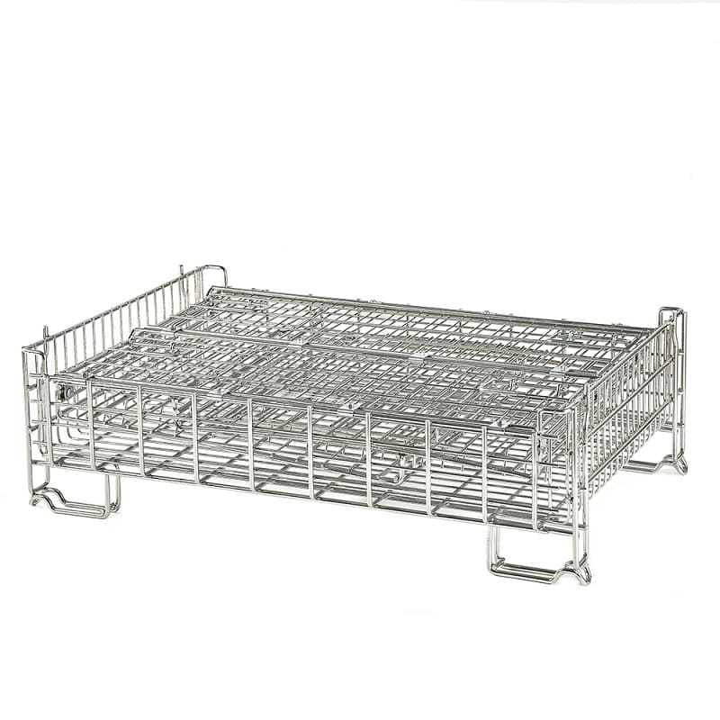 Protégé par un revêtement électrozingué (HTC 600 heures), ce conteneur fil repliable est particulièrement adapté au stockage et au transport de bouteilles de Champagne 75 cl.