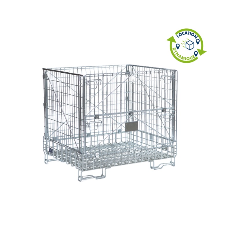 Le conteneur grillagé Maxi Industrie 180° est une caisse de transport et de stockage disponible en location dynamique.