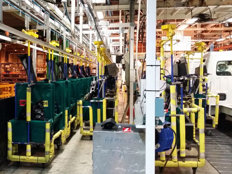 Votre atelier est approvisionné par chariots ? Nos dispositifs de convoyage aérien permettent d'automatiser l'approvisionnement des postes de travail.
