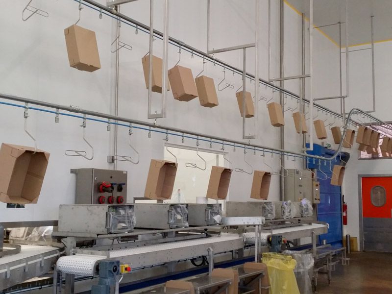 Les convoyeurs aériens sont utilisés en fromagerie, en abattoirs, en conditionnement et logistique, préparation de commande alimentaire, volailles.