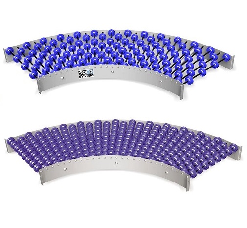Le convoyeur courbe à galets s'implante de manière privilégiée dans les circuits de conditionnement manuels et la préparation de commande, ou ls circuits de manutention légère.
