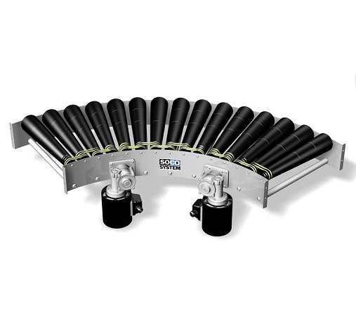 Les courbes motorisées offrent un flux régulier des produits. Différents rapports d'embrayage et un convertisseur de fréquence permettent de régler la vitesse.