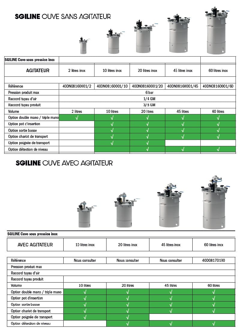 La cuve sous pression inox SGILINE est disponible avec ou sans agitateur pneumatique.
