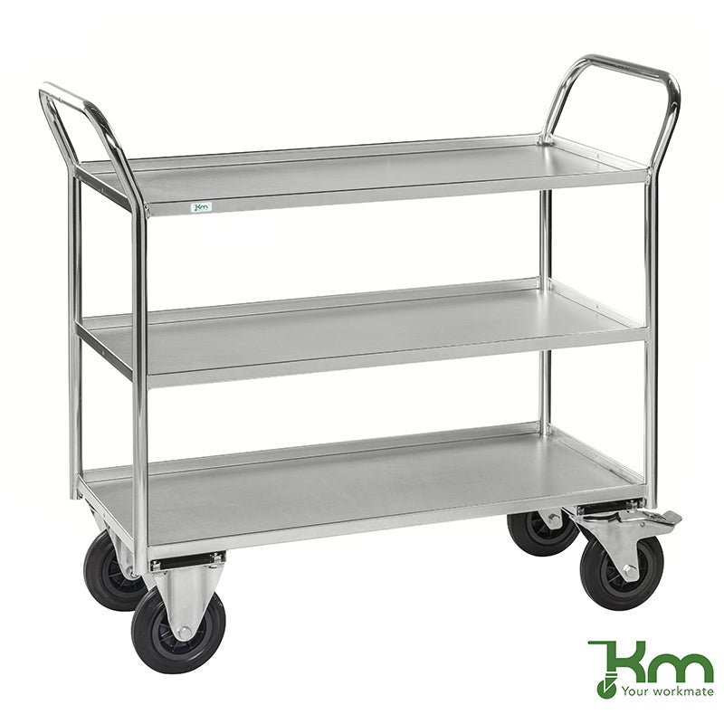 Desserte mobile acier soudée 3 étagères avec rebord KM4176