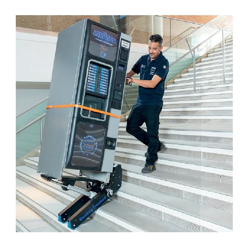 Le diable motorisé à chenilles "DONKEY TRACKED" transporte facilement les charges lourdes et encombrantes en escalier et sur terrain difficile en toute sécurité.
