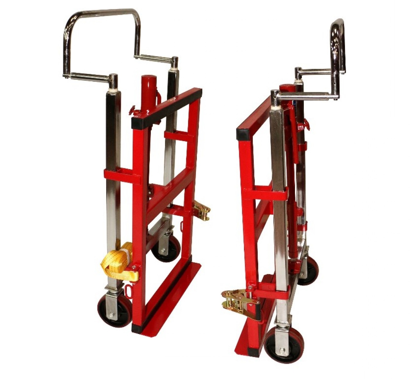 Principe de fonctionnement : le levage s'opère simplement avec le dispositif de levée hydraulique. Pour maintenir votre charge pendant sa manutention, ces deux diables symétriques sont fournis avec une sangle de 5 mètres.
