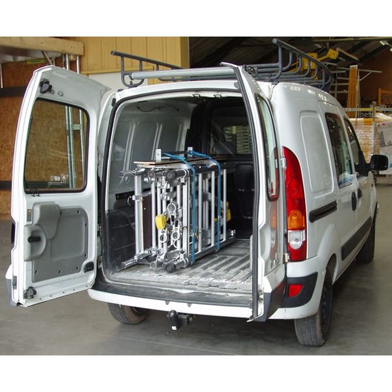 Sa compacité lui permet d'être facilement transporté et embarqué dans le caisson d'un véhicule utilitaire ou d'une fourgonnette.