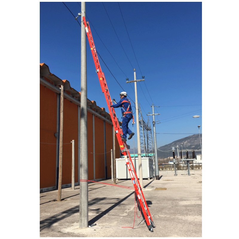 Nous proposons également une version appui caténaire et accès aux transformateurs de cette échelle coulissante en fibre de verre : nous consulter