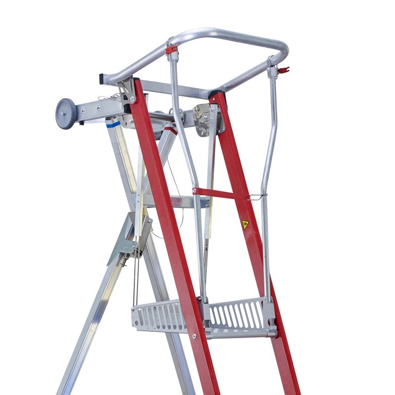 - Échelle double plans aluminium ou composite avec un grand plateau et garde-corps sécurisé