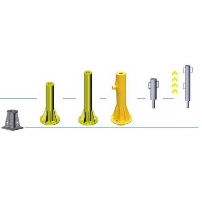 Nous fournissons également des extensions d'embases conçues pour rehausser les potences afin de passer par-dessus les garde-corps ou murs.