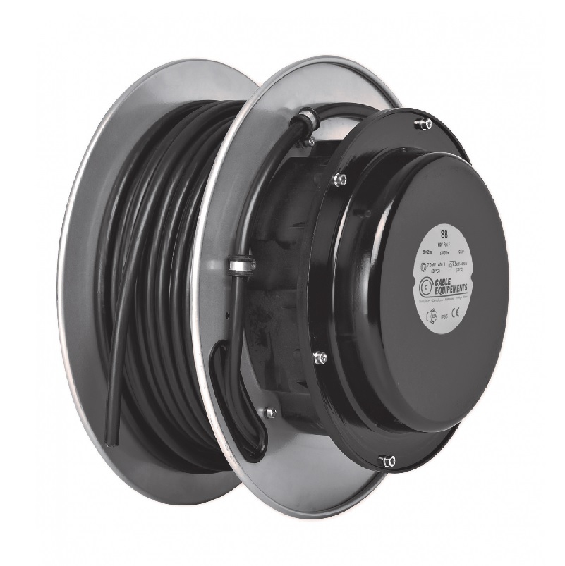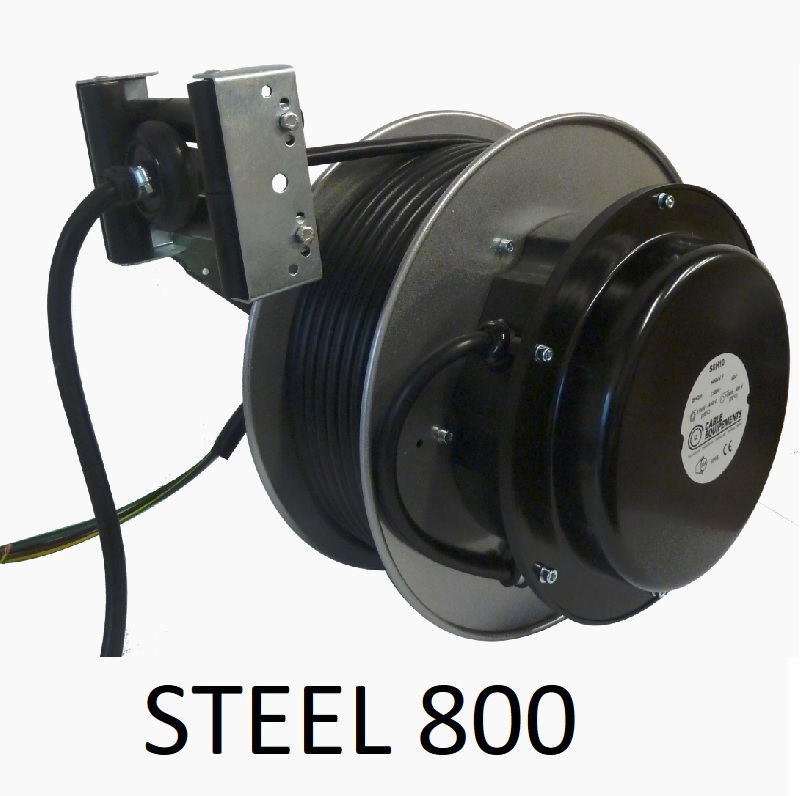 L'enrouleur à carter acier ouvert 1 à 25 conducteurs IP 65 - STEEL 800 représent une gamme de 115 modèles pour câbles de 1 à 25 conducteurs de 2,5 mm² à 25 mm² jusqu'à 50 mètres (la longueur indiquée inclut 2 mètres en dehors du tambour).