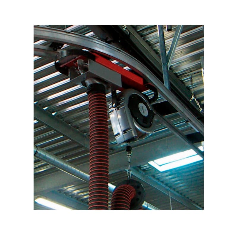 Il est par exemple souvent utilisé pour suspendre un tuyau d’aspiration de gaz d’échappement au-dessus de la zone de travail.