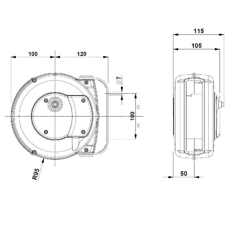 L'enrouleur de tuyau YP100 est un modèle mural pour les fluides air et eau à basse pression (jusqu'à 12 bar).